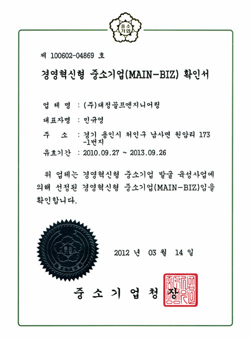 Obtaining small business company confirmation(MAIN-BIZ) of management innovation-type